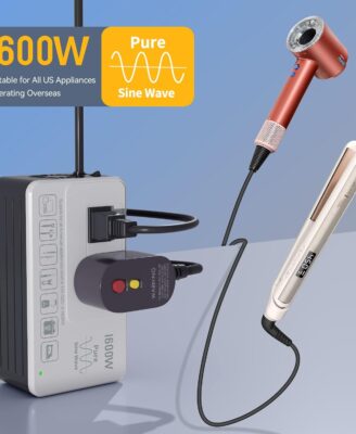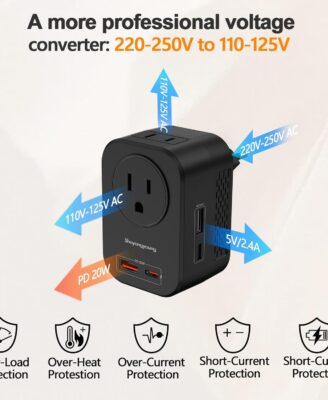 220V to 110V 20W PD Voltage Converter US to Europe International Universal Travel Adapter with 2 USB A 2 Type-C Port Worldwide Power Converters Plug Combo for Spain Italy (Black)-MB